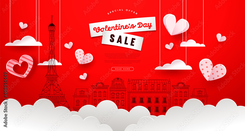 Obraz na plátně Valentine's Day sale paper cut paris city template