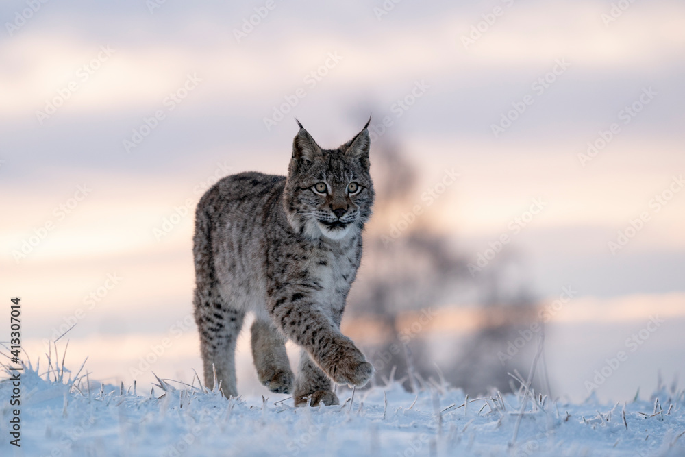 Obraz na plátně Eurasian wild cat in wild nature habitat, Czech, Europe