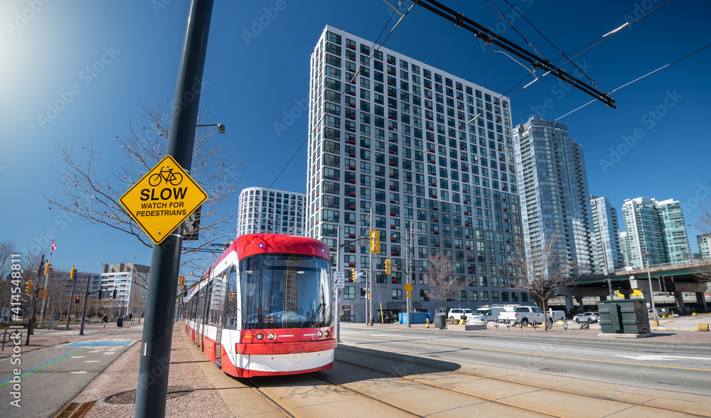 Obraz na plátně Tram streetcar in Toronto, Ontario, Canada