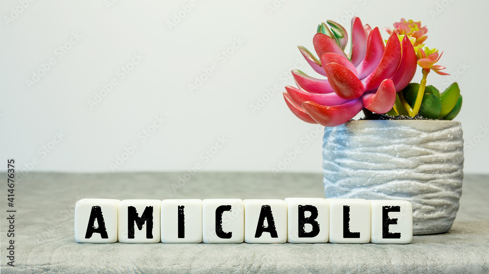 Obraz na plátně Soft cubes with the abbreviation AMICABLE with a flower