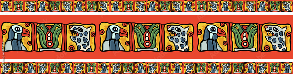 Obraz na plátně South American colorful national style ethnic border ornament of Maya or Aztec a