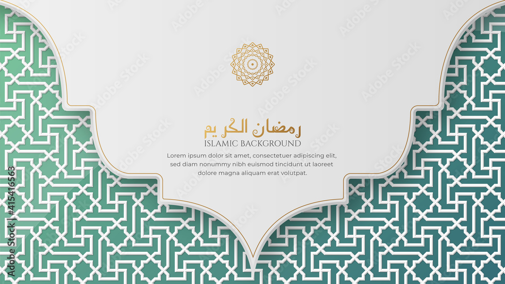 Obraz na plátně Ramadan Kareem Arabic Islamic Elegant White and Green Ornamental Background with