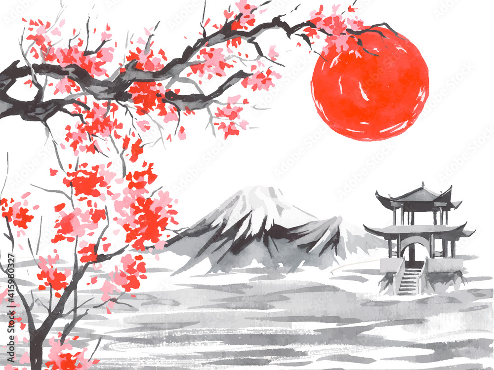Obraz na plátně Japan traditional sumi-e painting