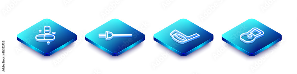 Obraz na plátně Set Isometric line Vitamin pill, Fencing, Ice hockey stick and puck and Kettlebell icon