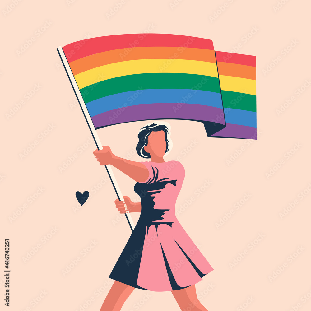 Obraz na plátně Female character holding a rainbow flag, Pride, LGBTQ, human rights