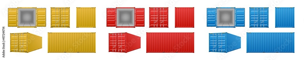 Obraz na plátně Set of colorful cargo containers in realistic 3d style