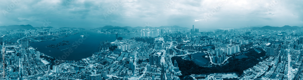 Obraz na plátně Panorama view of Hong Kong city in blue color tone