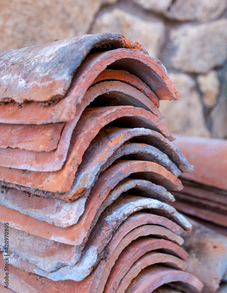 Obraz na plátně Packs of reused mediterranean roof tiles or monk and nun