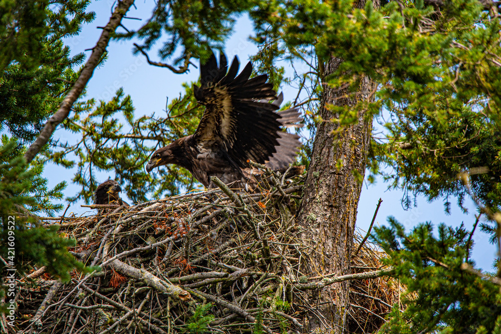 Obraz na plátně Sequim, Washington State, young juvenile bald eagles fledgling