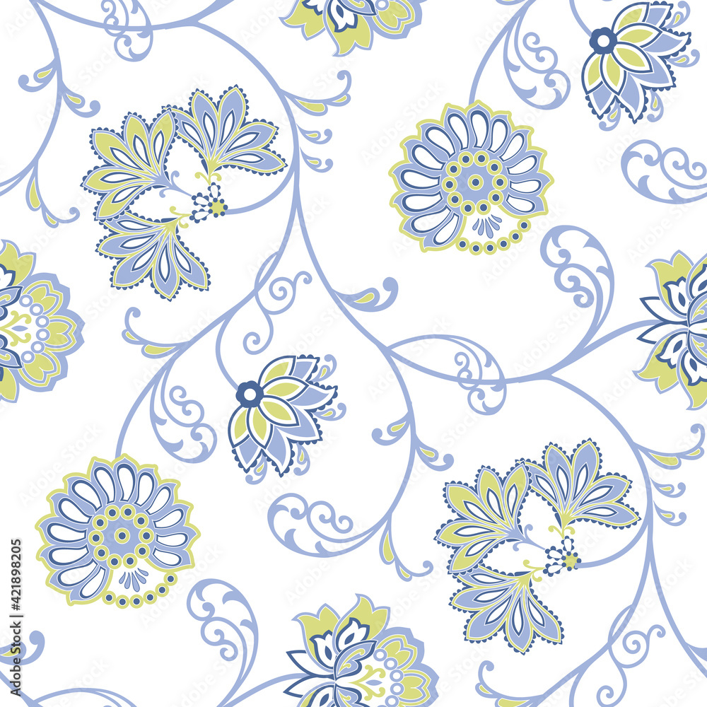 Obraz na plátně Jacobean seamless vector design, Cool color combo