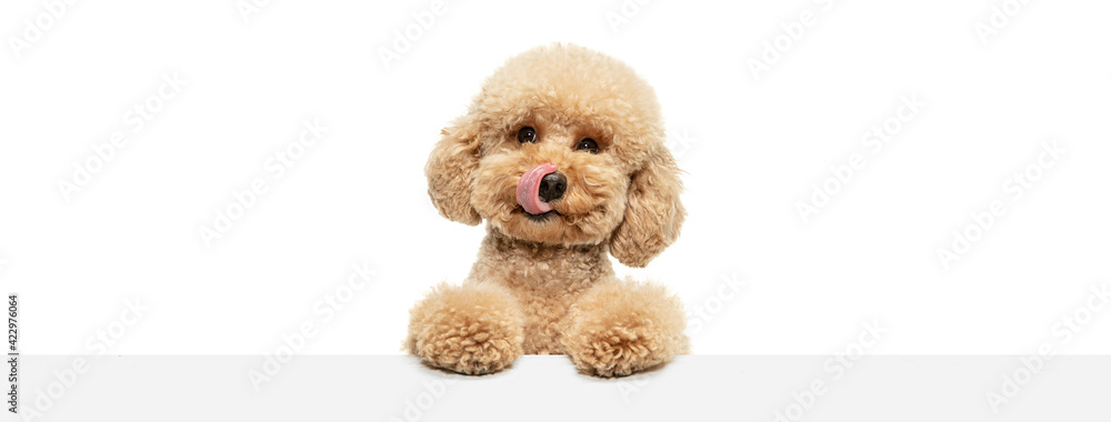 Obraz na plátně Cute puppy of Maltipoo dog posing isolated over white background