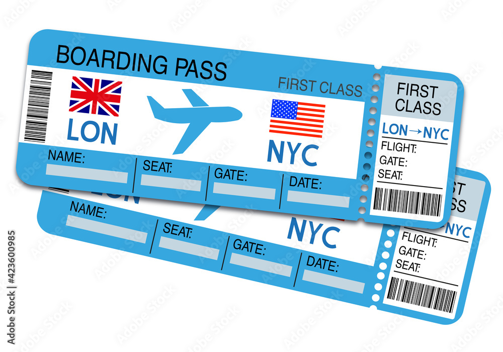 Obraz na plátně Boarding pass. Air ticket. Flight from London to New York