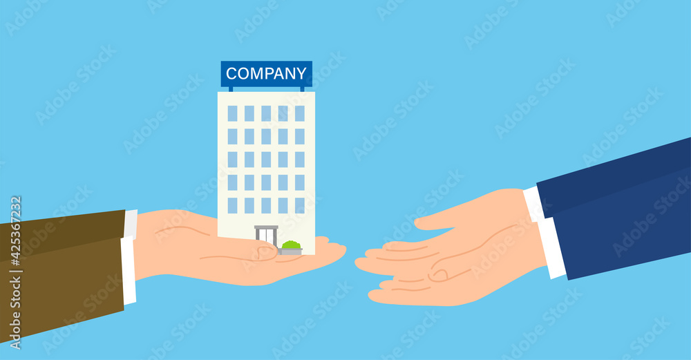 Obraz na plátně 会社を受け渡す手、事業継承・事業承継のイラストイメージ、ベクターイラストレーション
