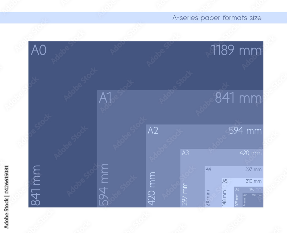 Obraz na plátně A-series paper formats size, A0 A1 A2 A3 A4 A5 A6 A7 with labels and dimensions in milimeters