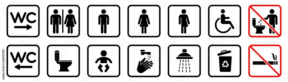 Obraz na plátně Toilet icons set, WC signs, toilet signs, bathroom symbol, vector illustration