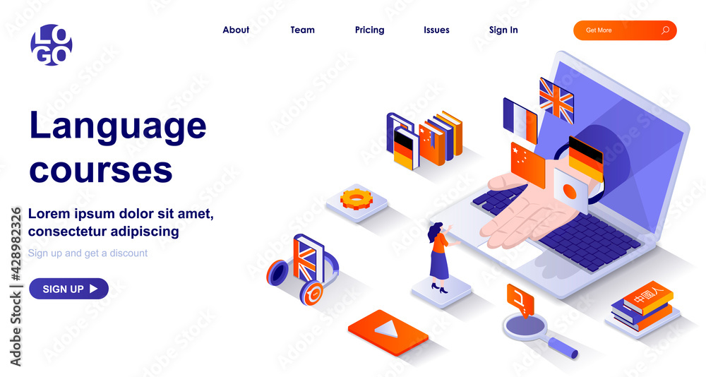 Obraz na plátně Language courses isometric landing page