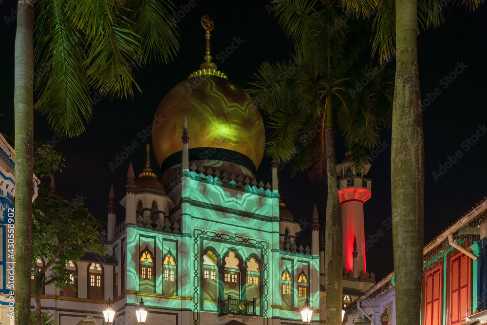 Obraz na plátně Illuminated Sultan Mosque (Masjid Sultan) at Kampong Glam, Singapore