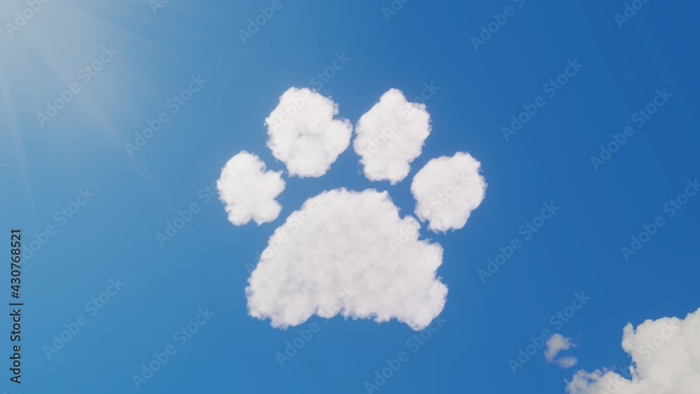 Obraz na plátně 3d rendering of white clouds in shape of symbol of paw on blue sky with sun