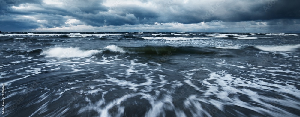 Obraz na plátně Storm clouds above the Baltic sea in winter, long exposure