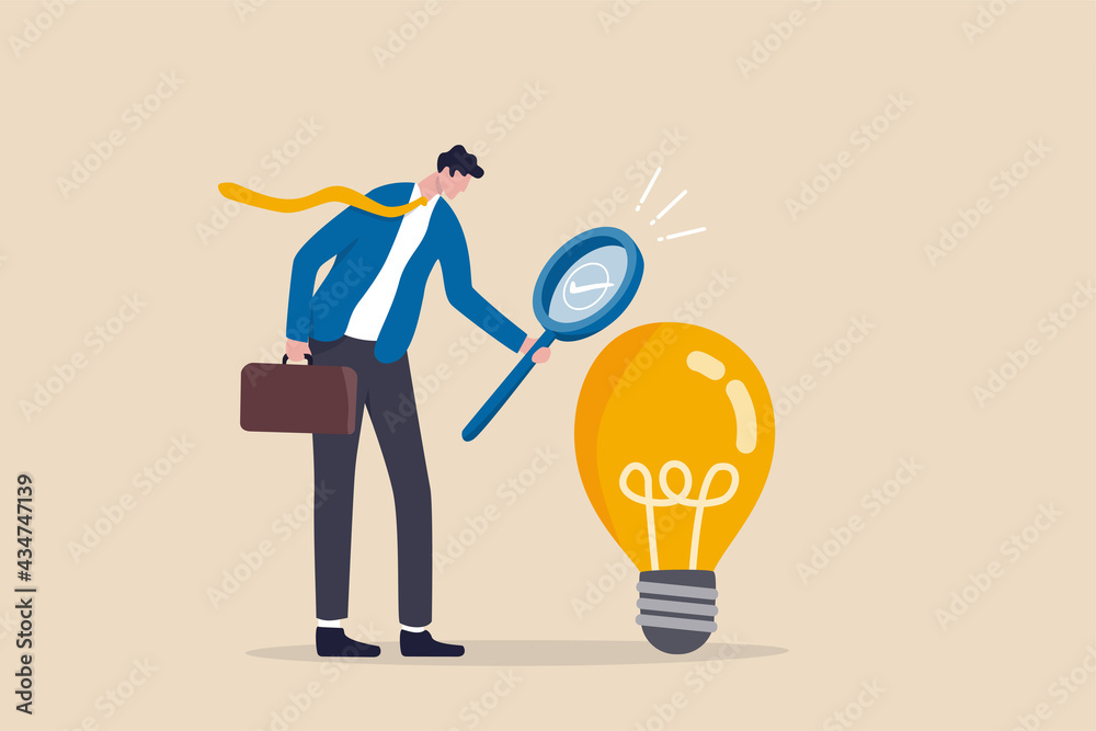 Obraz na plátně Validate startup idea that have potential to implement and success in real life, analyze and choose best business idea concept, smart businessman verify or validate light bulb idea and make approval
