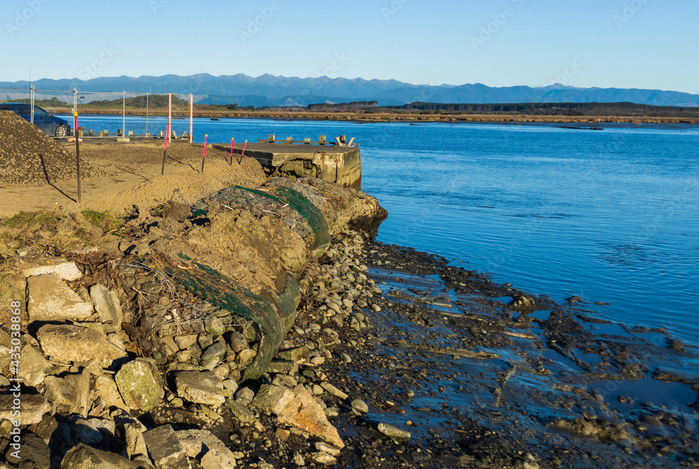 Obraz na plátně Foxton Beach Warf Wall Old Section