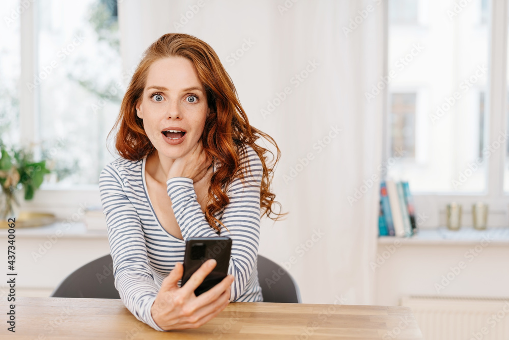 Obraz na plátně Young woman staring at camera in shocked amazement
