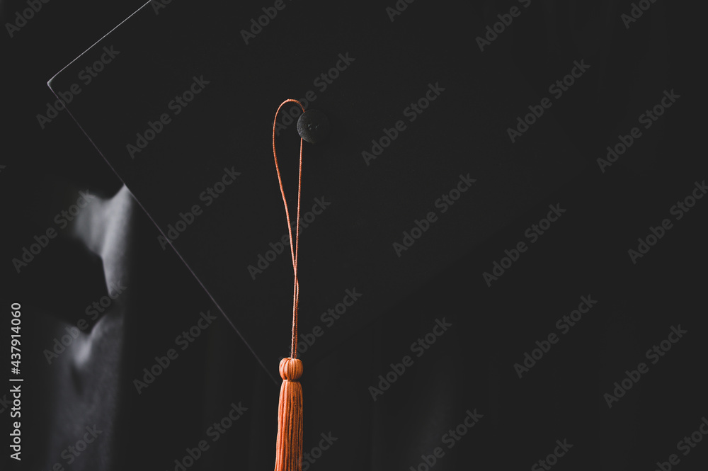 Obraz na plátně PhD graduate in black graduatio gown University degree