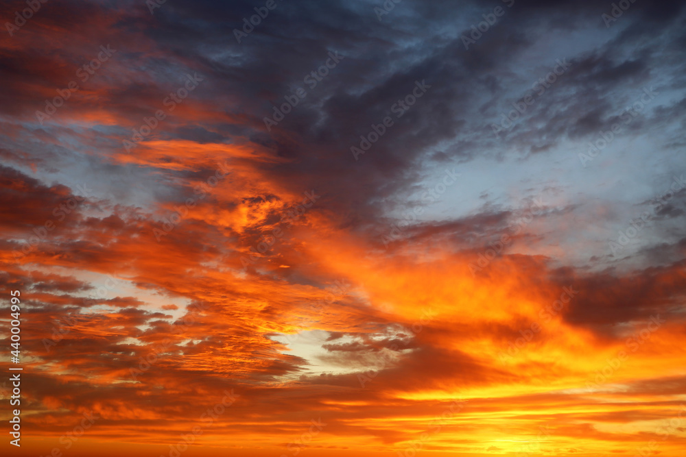 Obraz na plátně Sunset on colorful dramatic sky with red and orange clouds