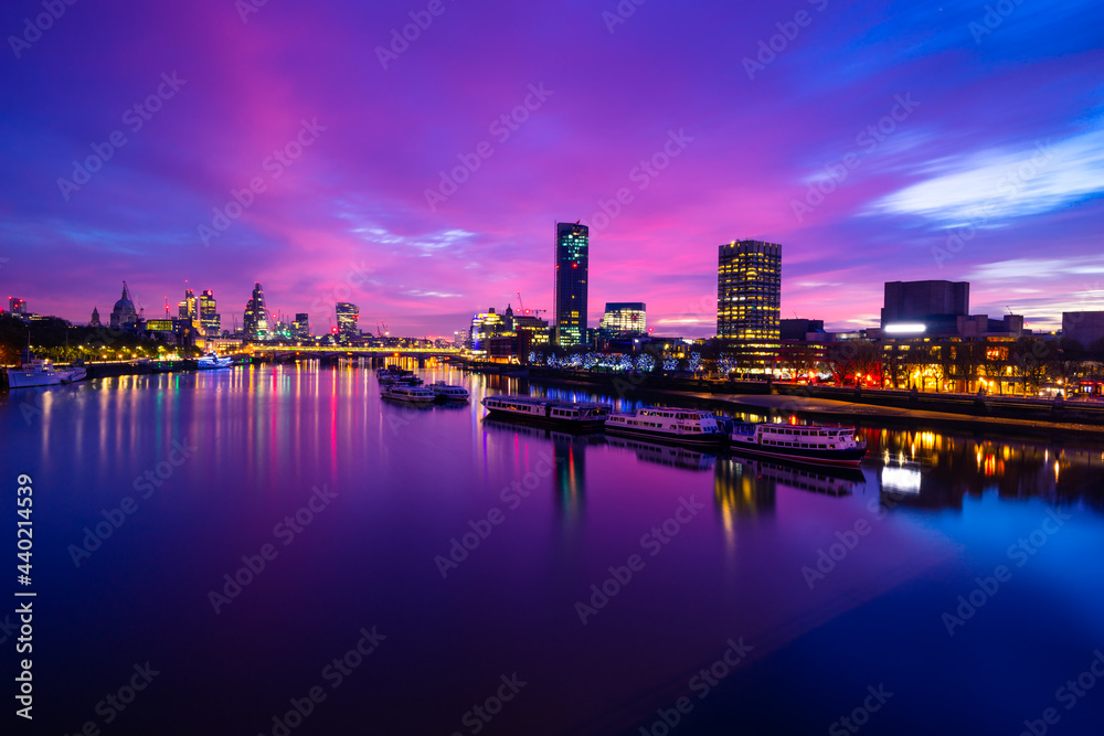 Obraz na plátně Southbank of river Thames at sunrise in London . England
