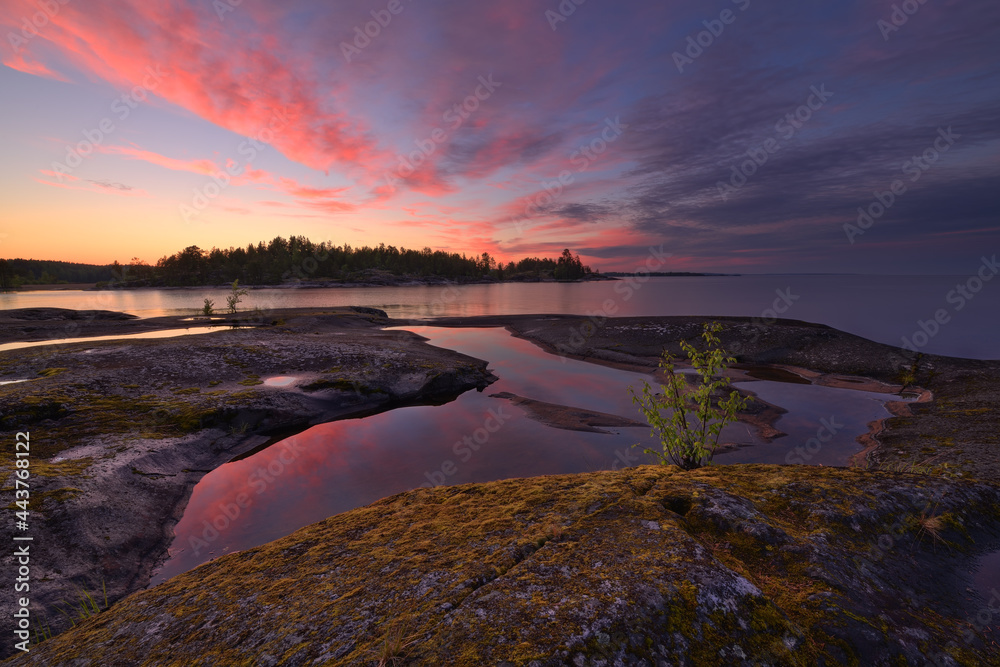 Obraz na plátně Stone shore of Lake Ladoga on a summer evening