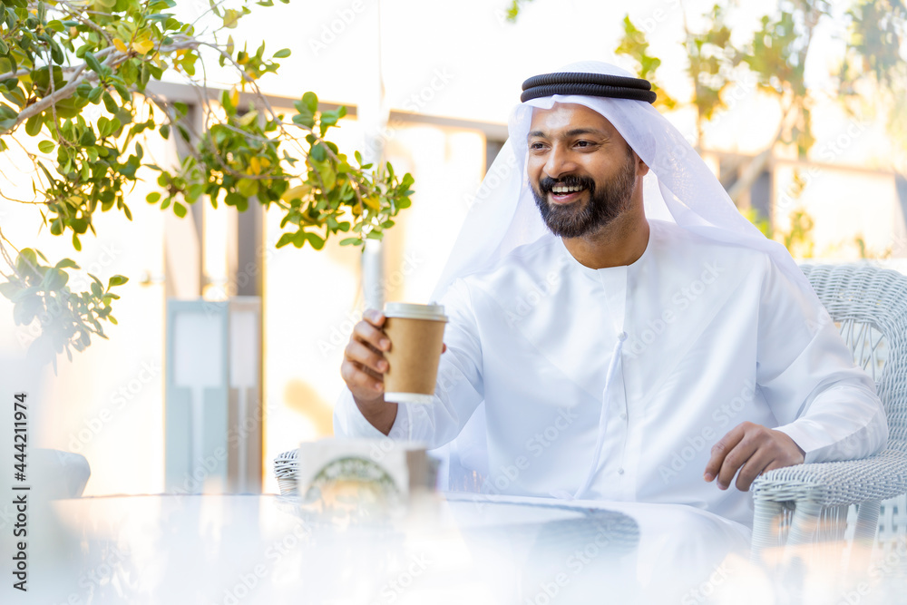 Obraz na plátně Middle Eastern Arab Emirati man at the Cafe in Dubai, United Arab Emirates