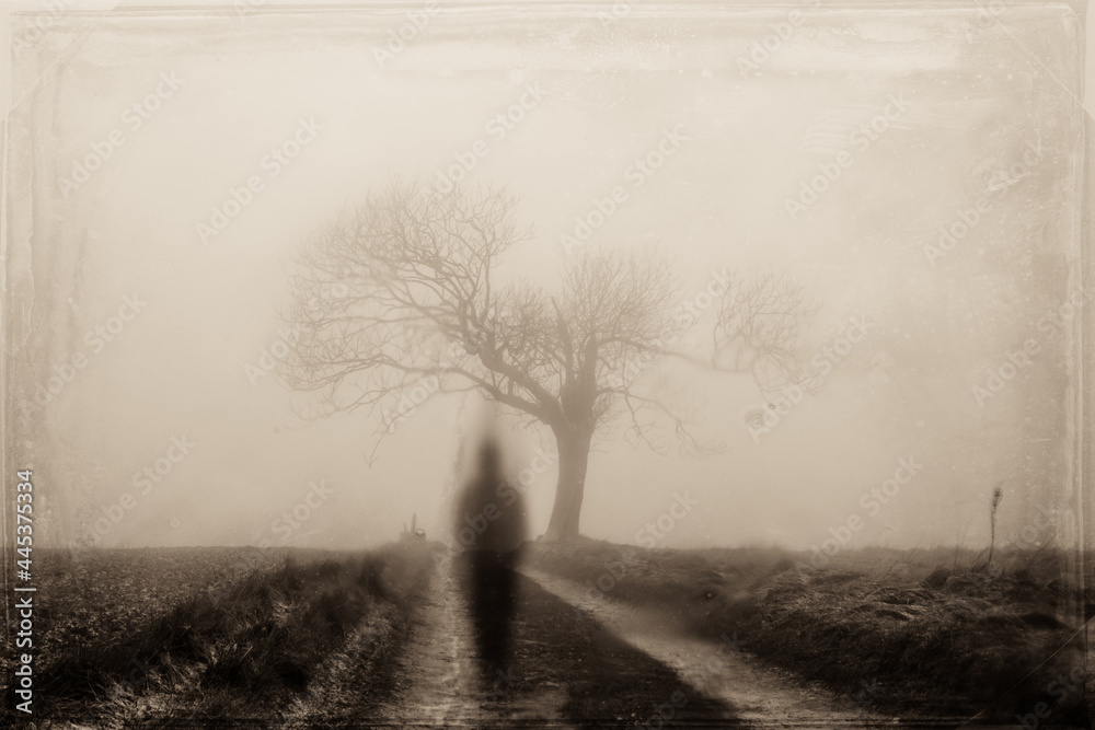 Obraz na plátně A ghostly blurred figure on a country path in winter