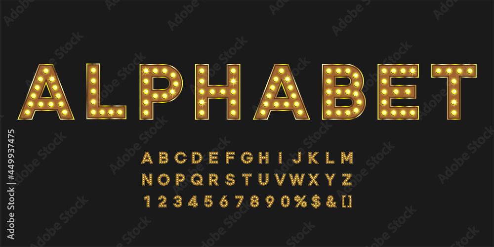Obraz na plátně Gold shining marquee alphabet with numbers and warm light