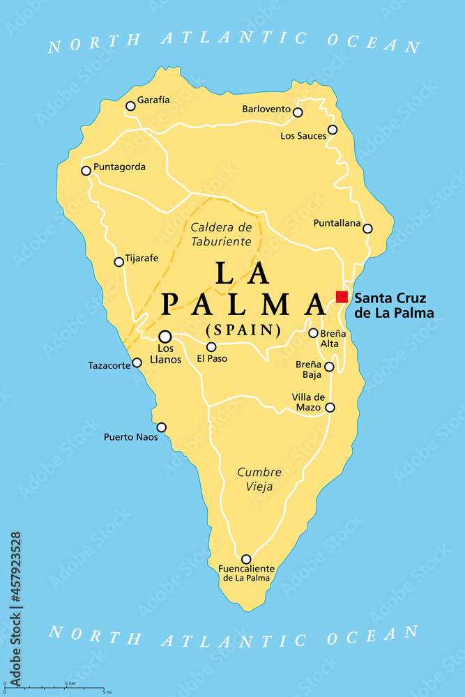 Obraz na plátně La Palma island, political map, with capital Santa Cruz
