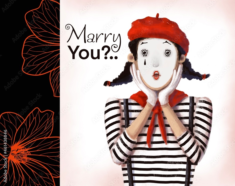 Obraz na plátně clown mime girl very surprised valentines card, watercolor style illustration wi