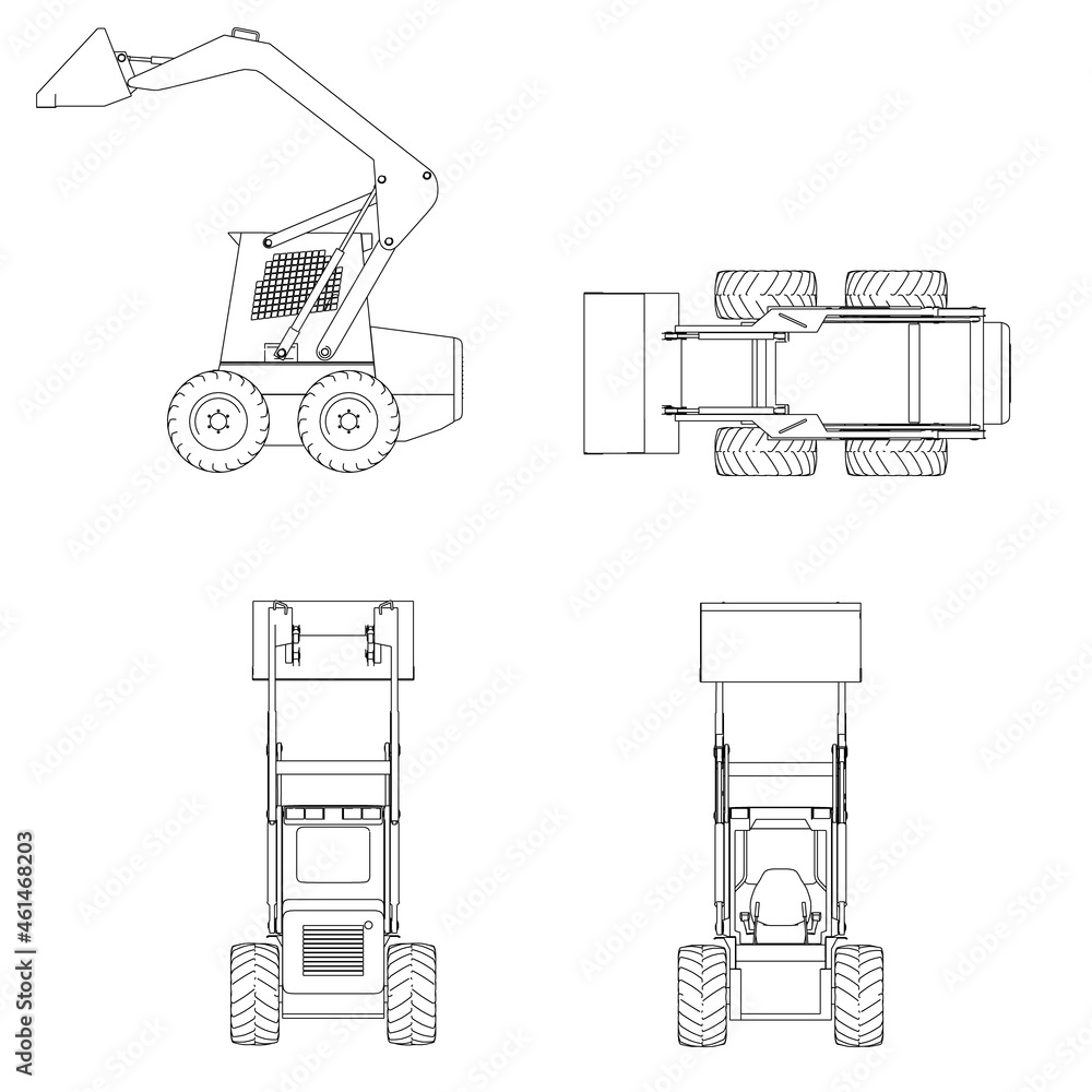 Obraz na plátně Set with wireframe of a small forklift from black lines isolated on white background