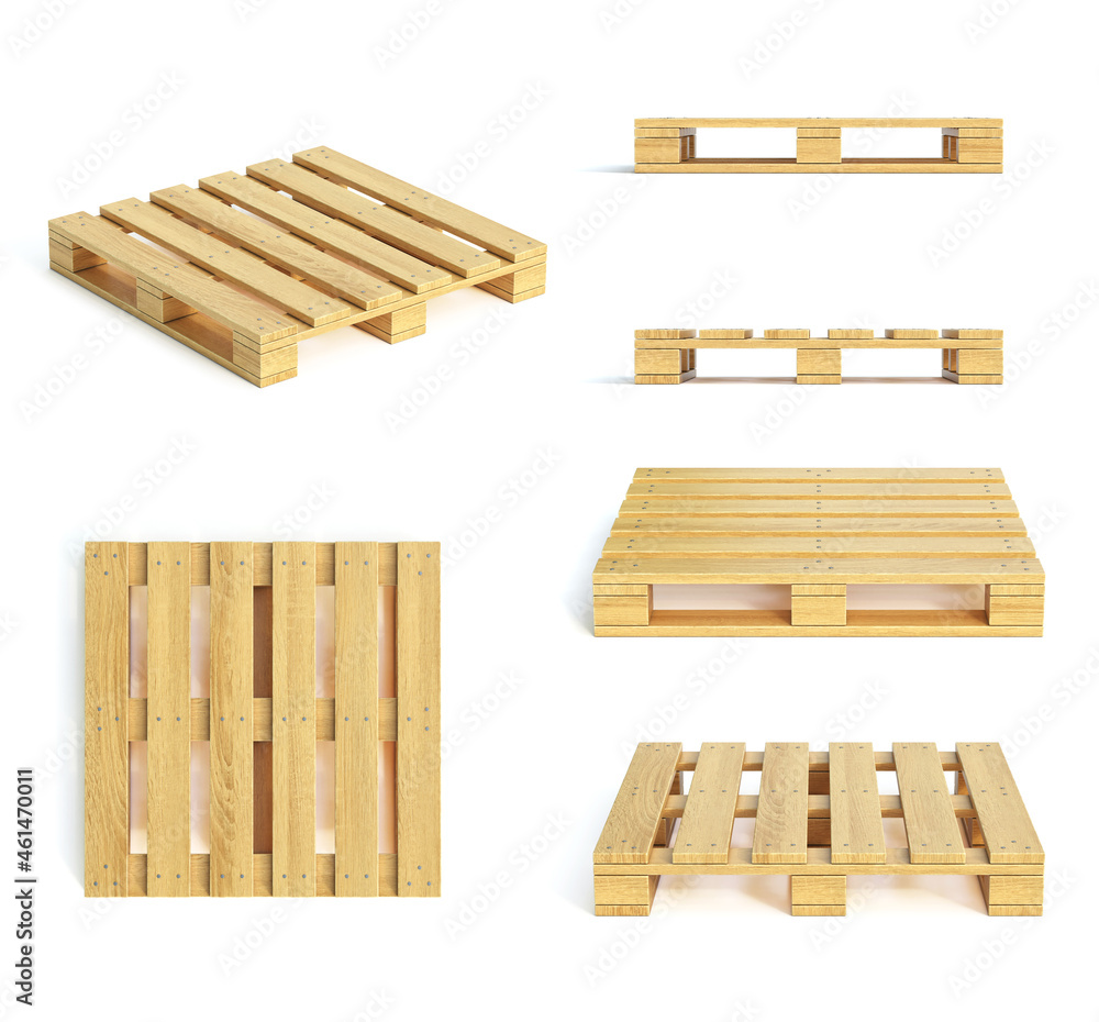 Obraz na plátně Wooden pallet various views isolated on white background 3d rendering