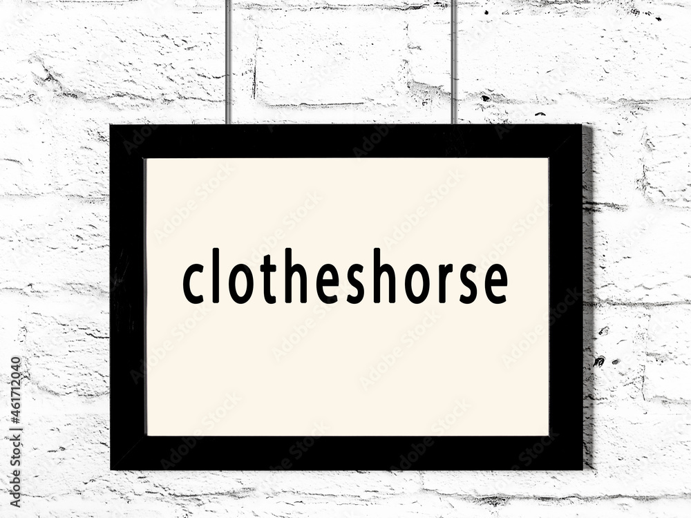 Obraz na plátně Black frame hanging on white brick wall with inscription clotheshorse