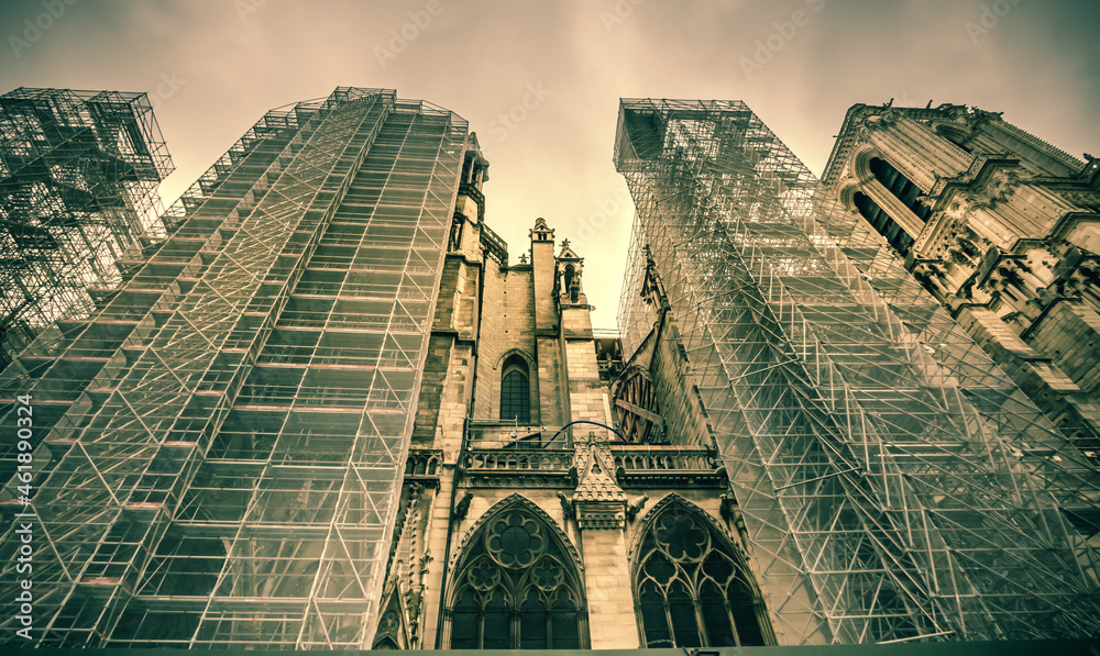 Obraz na plátně Notre Dame de Paris en travaux à Paris à cause d'un incendie