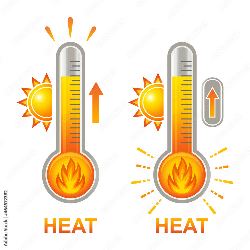 Obraz na plátně Hot thermometer with fire flame, high heat temperature, extreme overheating icon set