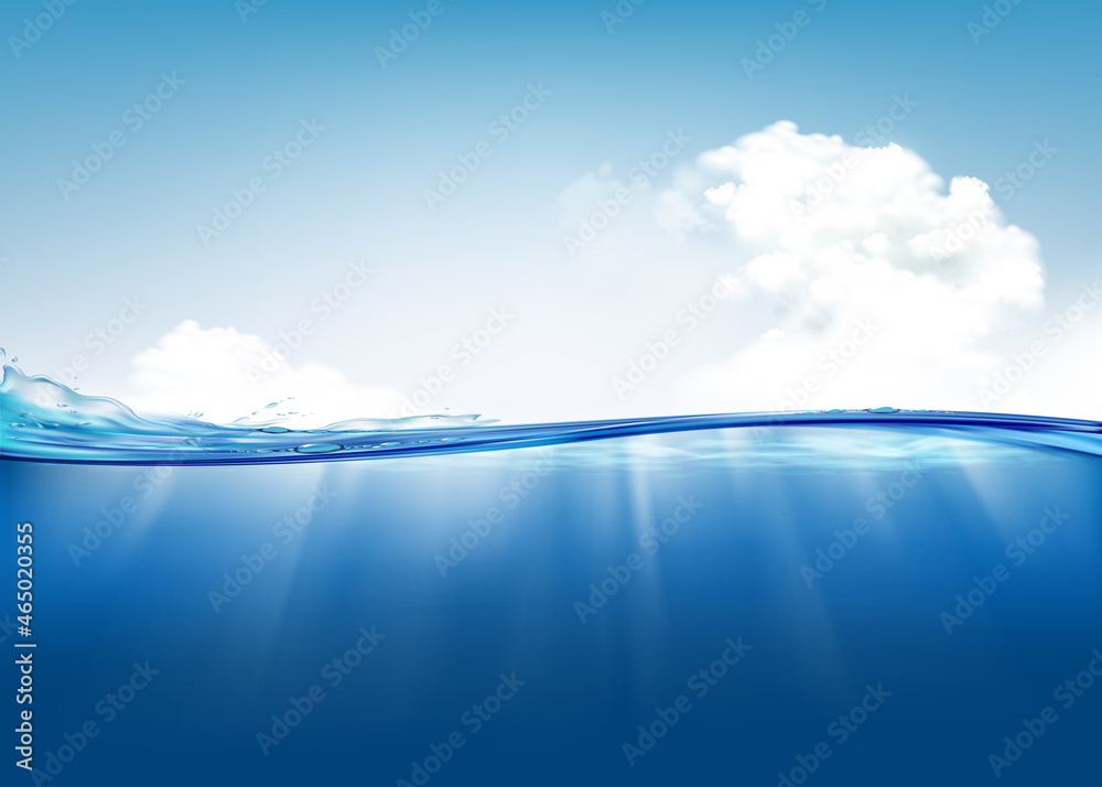 Obraz na plátně Sea water surface. Natural landscape with sky and clouds.