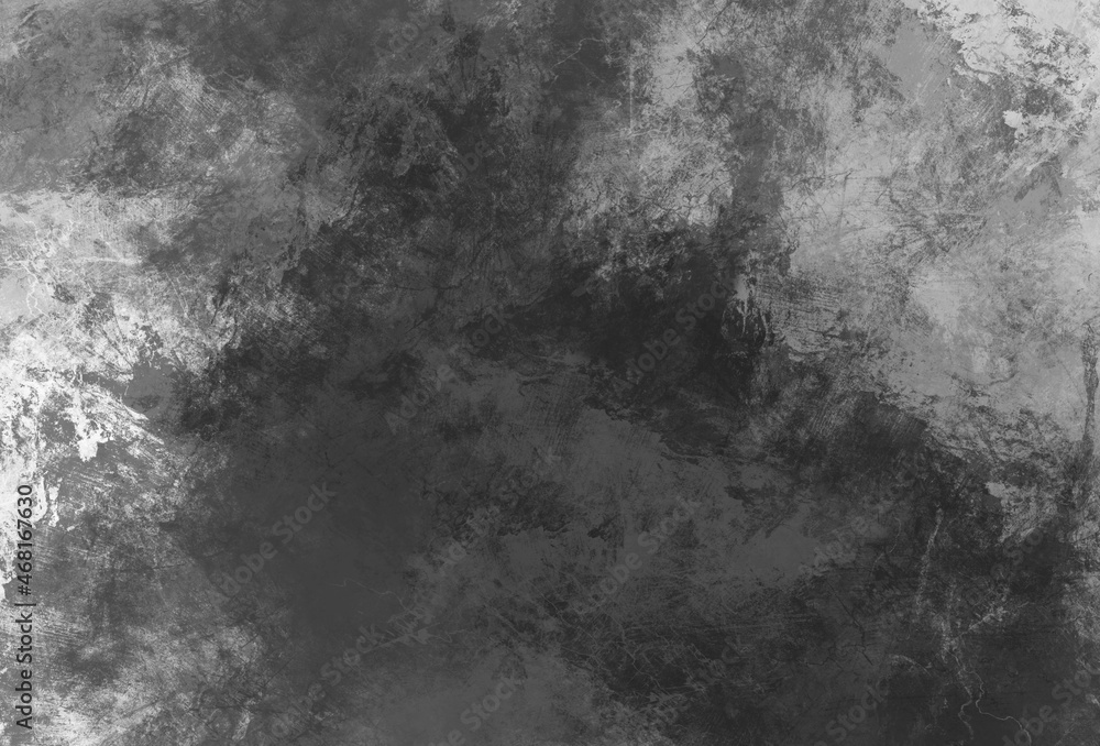 Obraz na plátně Dark grungy overlay backdrop in monochrome tones Chaotic paint brushstrokes on paper Creative creation