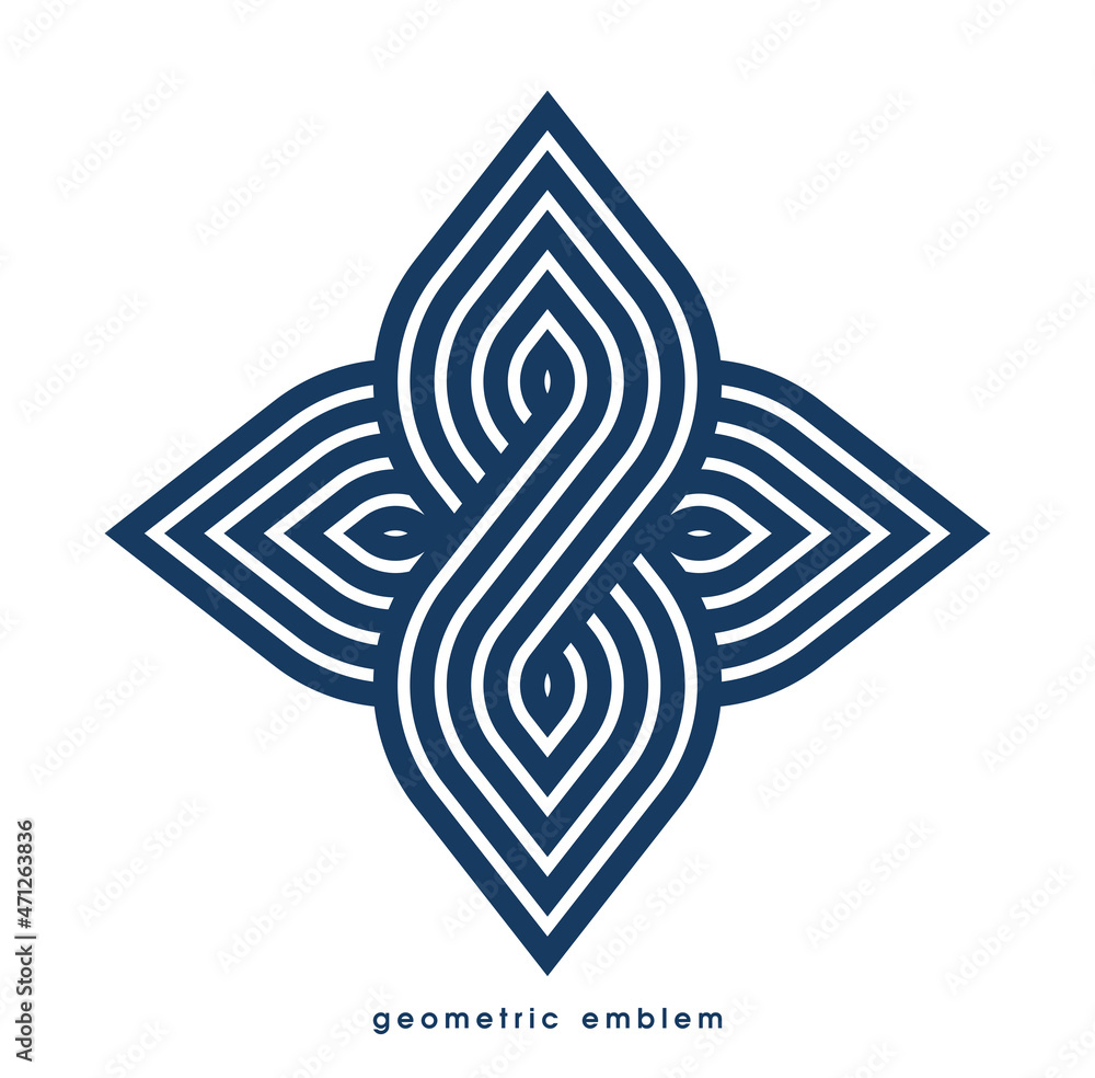 Obraz na plátně Abstract geometric flower shaped floral vector symbol isolated on white, line art geometrical shape emblem or icon, best for boutique or cosmetic or hotel or spa or jewelry logo