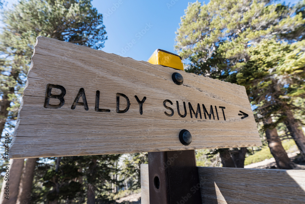 Obraz na plátně Mt Baldy summit trail sign in the San Gabriel Mountains near Los Angeles, California