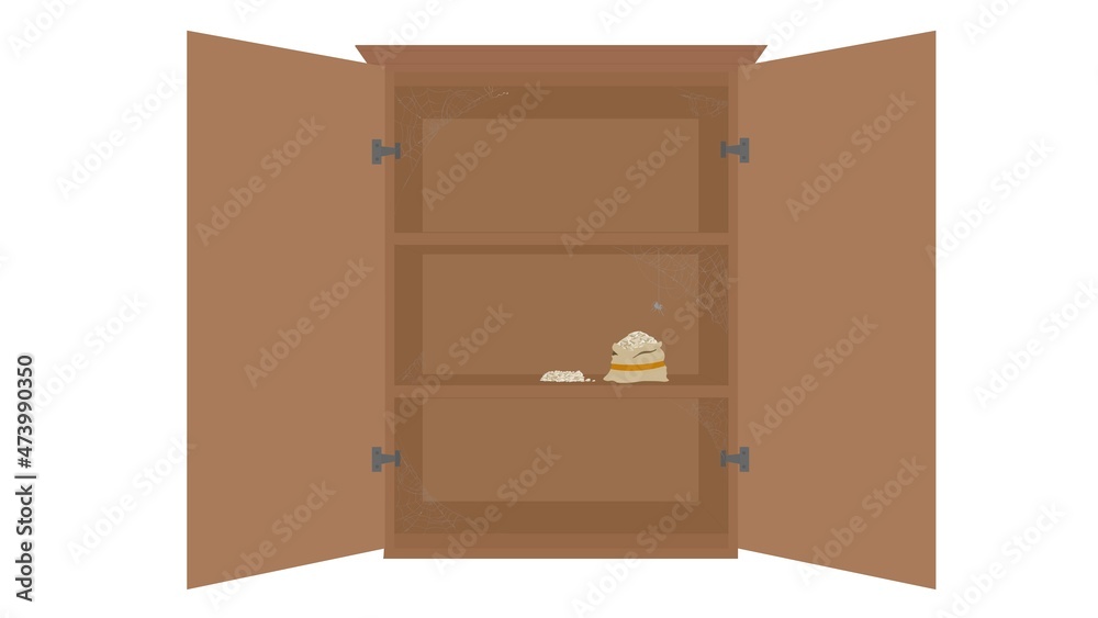 Obraz na plátně Almost empty shelfs and cupboard with cobwebs Vector