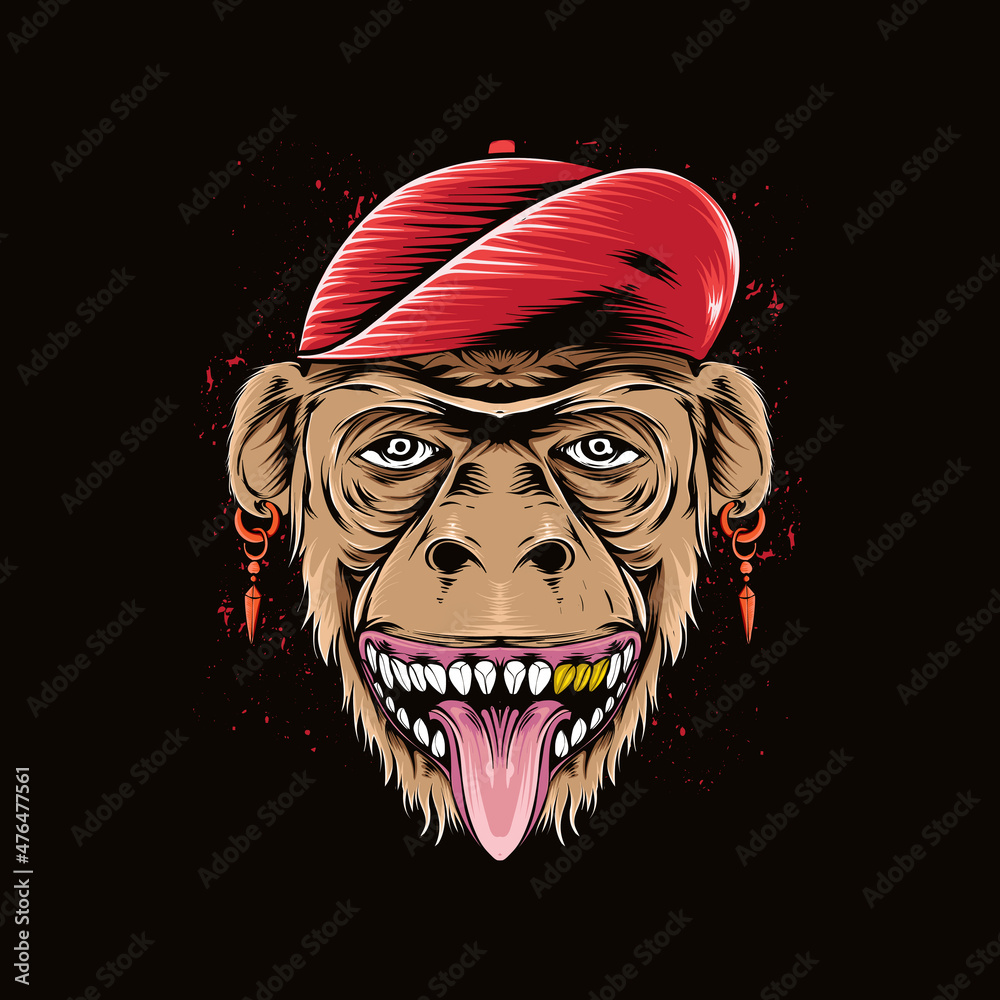 Obraz na plátně happy monkey head illustration for t-shirt design and print