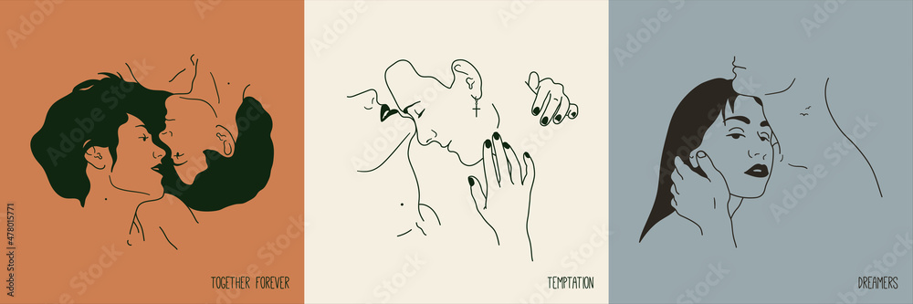 Obraz na plátně Couple in love. Romantic lovers faces. Linear sketch portrait set