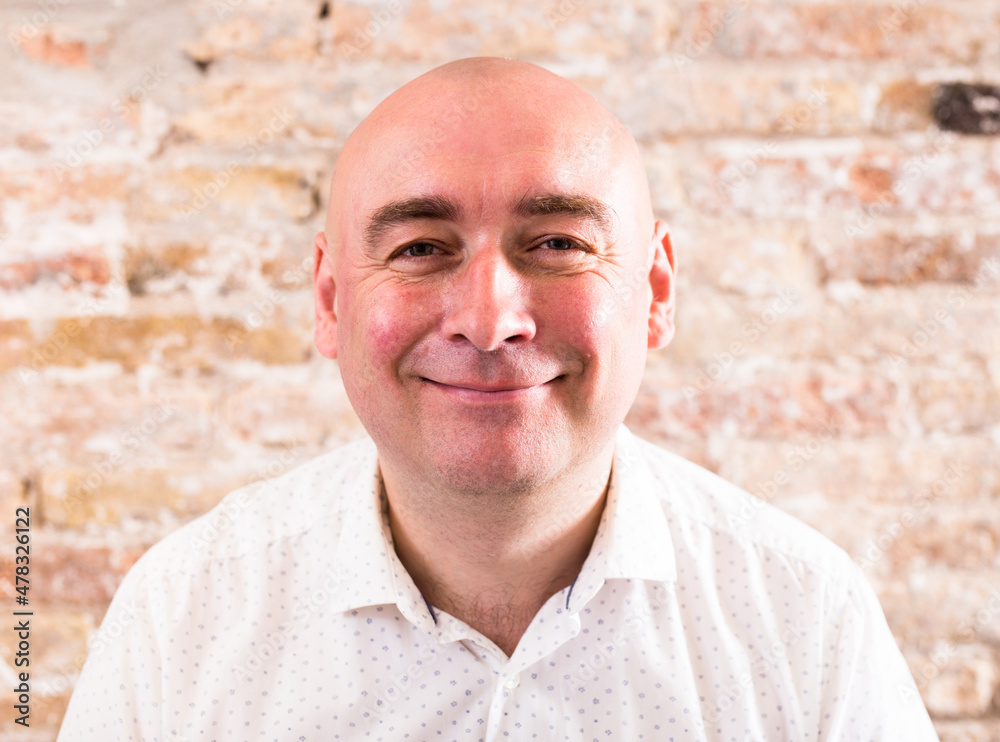 Obraz na plátně portrait of bald adult mature man with emotions against brick wall