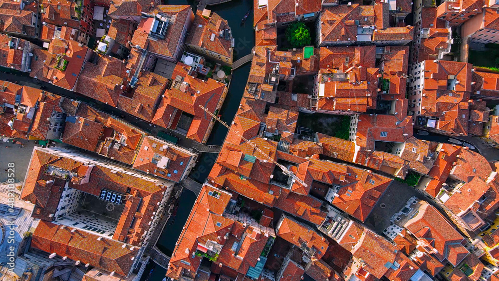 Obraz na plátně Aerial View of Venice Rooftops and Canals