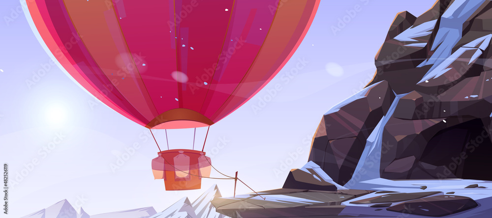 Obraz na plátně Hot air balloon tied near cave in mountains